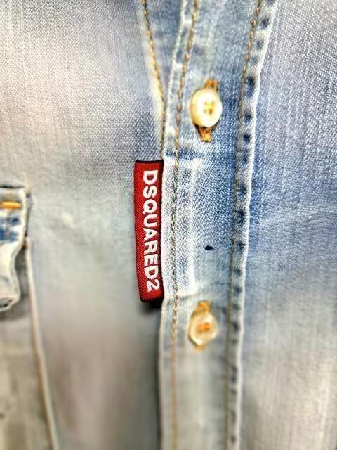 DSQUARED2 ディースクエアード ロゴ ダメージ加工 デニムシャツ 長袖シャツ/メンズ/42☆新作モデル
