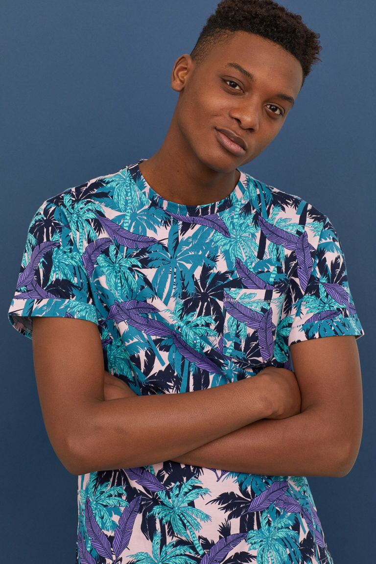 H&M/エイチアンドエム 葉っぱ柄 半袖Tシャツ/メンズ/S/ピンク☆新品