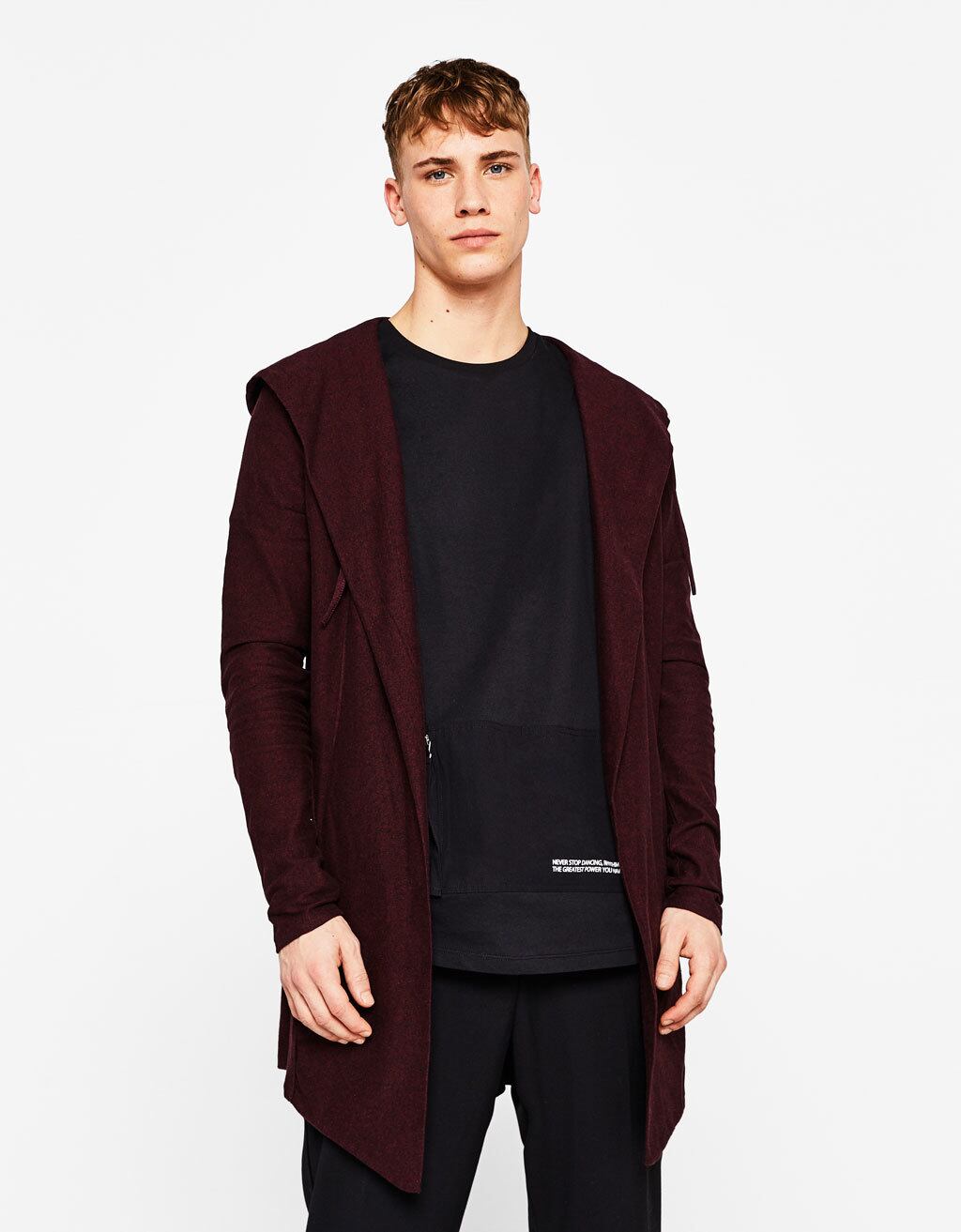 Bershka ベルシュカ フード付き ケープ ロングパーカー/メンズ/XS/ボルドー☆新品