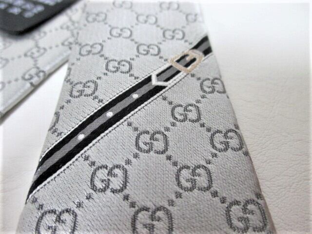GUCCI グッチ GG柄 ネクタイ/メンズ/光沢シルバー☆新品☆新作モデル☆国内正規品