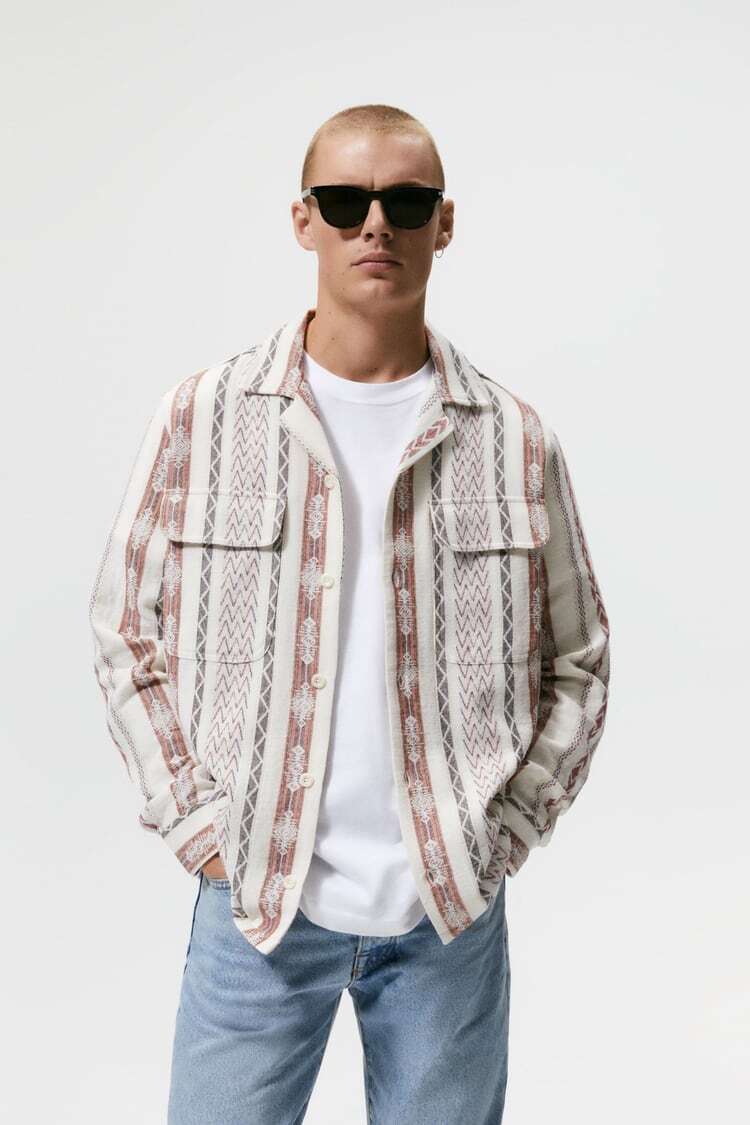 ZARA ザラ ジオメトリック ジャカード シャツジャケット オーバーサイズ/メンズ/S☆新品☆2022新作モデル