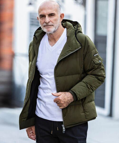 【素材】ポリエステル98%, ポリウレタン2% 別布: ポリエステル100%、中綿: ダウン80%, フェザー20%