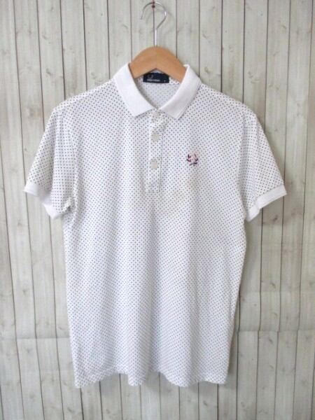 ☆フレッドペリー ドット柄 ポロシャツ 半袖/メンズ/M☆ホワイト